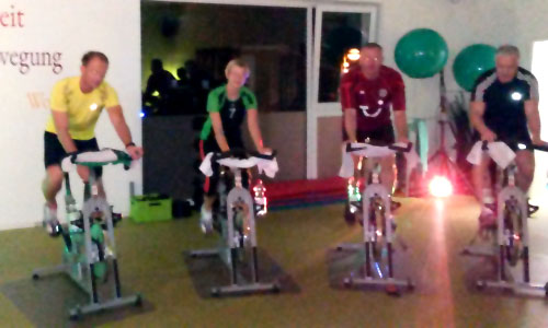 Auch einige Neulinge haben sich aufs Rad getraut: Sie sind begeistert nach einer halben Stunde vom Rad gestiegen und haben sich vorgenommen, öfter Indoorcycling zu fahren.